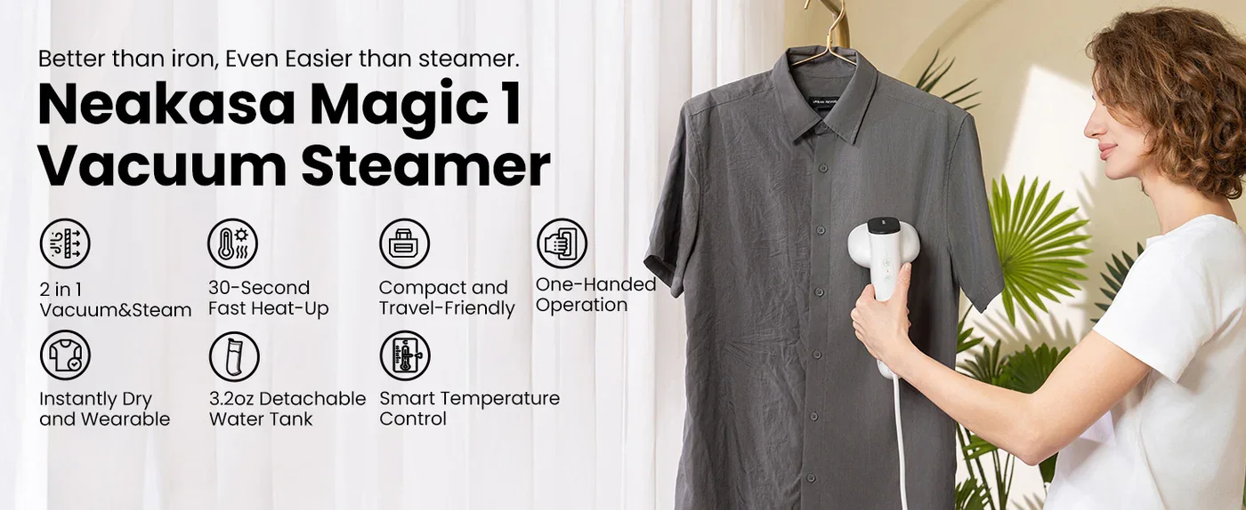 Avec une succion de 2300 Pa, le défroisseur vapeur Neakasa Magic 1 maintient automatiquement vos vêtements en place, permettant un défroissage simple d’une seule main — même dans les zones difficiles comme les ourlets et les coutures — tout en éliminant le risque de brûlures.